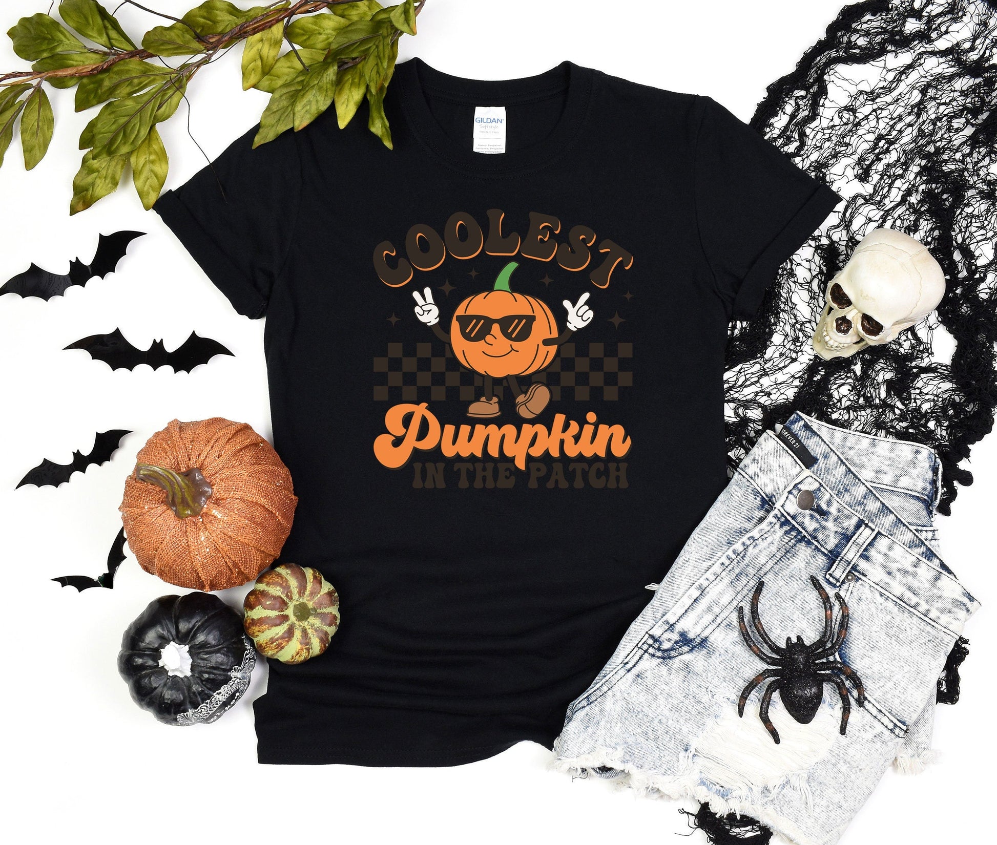 Coolest Pumpkin on the Patch Custom Halloween T-Shirt, Comfort Ghost Tee, Team Pumpkin Shirt, Retro Race Halloween Shirt, Bat Halloween Gift