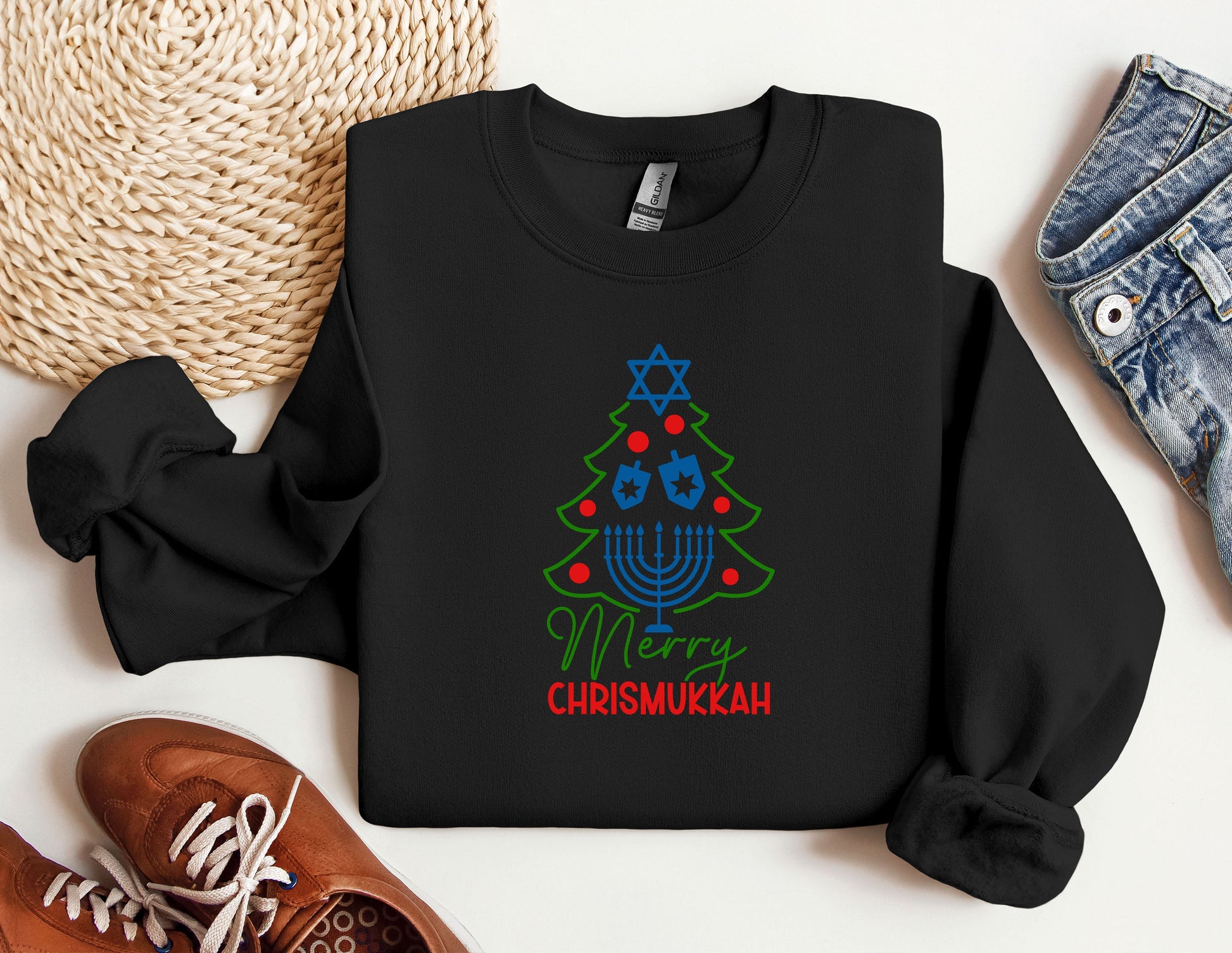Happy Chrismukkah Sweatshirt, Funny Hannukkah Sweatshirts, Christas Ugly Hoodie, Hanukkah Menorah Sweatshirt, Chanukah Jewish Holiday Sweat
